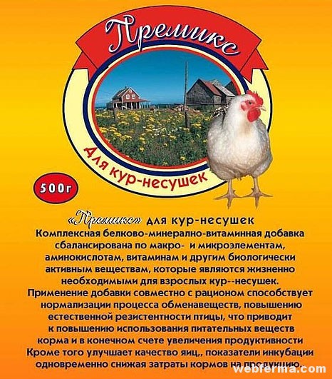Многие производители выпускают готовые витаминно-минеральные премиксы. В целом применение их оправдано, если в состав входят несколько минеральных элементов, помимо кальция и фосфора. Такой премикс хорошо добавлять к бедному по структуре корму (например, одно зерно или только отходы с кухни). Также он будет давать эффект повышения продуктивности, если остальные параметры содержания достаточно хороши для птицы.