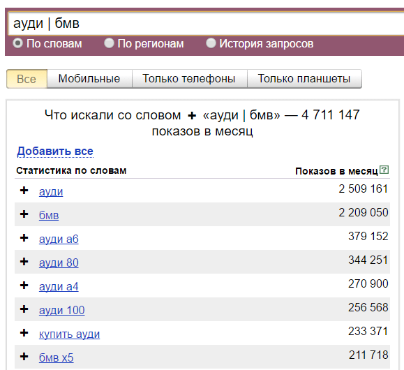 Встает вопрос: как же наиболее точно подсчитать количество потенциального трафика по запросу?